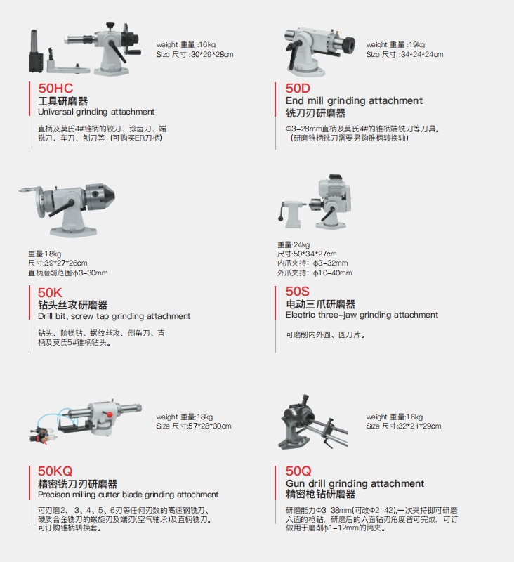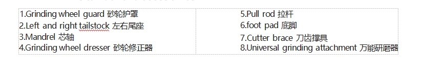 本機床適用于刃磨高速鋼,硬質合金或其它材料刀具。還便于磨 削外圓,平面溝槽和成形面等。若配備特殊附件,還能磨制各種 齒輪、蝸輪滾刀,成形刀、球頭銑刀、麻花鉆,錐鉸刀等。